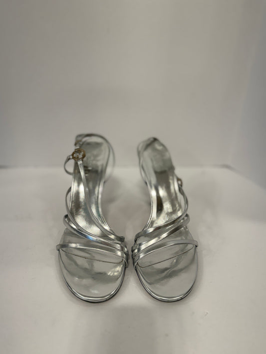 GUCCI Silver Logo Strap Heels Sandals/ US8-EU38.5
