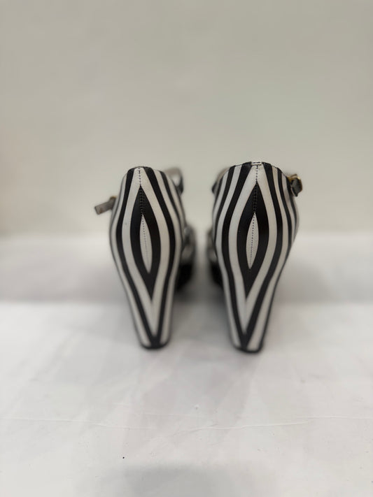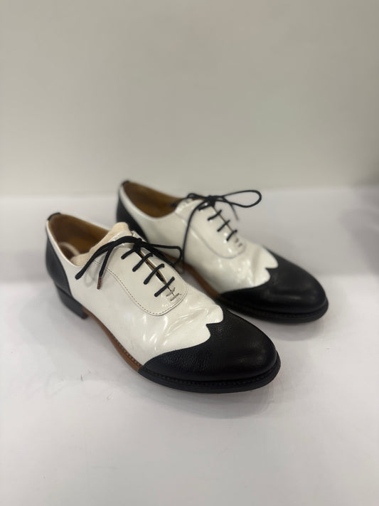 ANGELA SCOTT Oxford Black and White Leather Patent / US8-EUR38 g