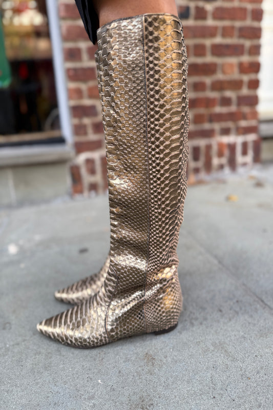DEVI KROELL Gold Snake Skin Leather Tall Knee High Boots / US6.5-EU37