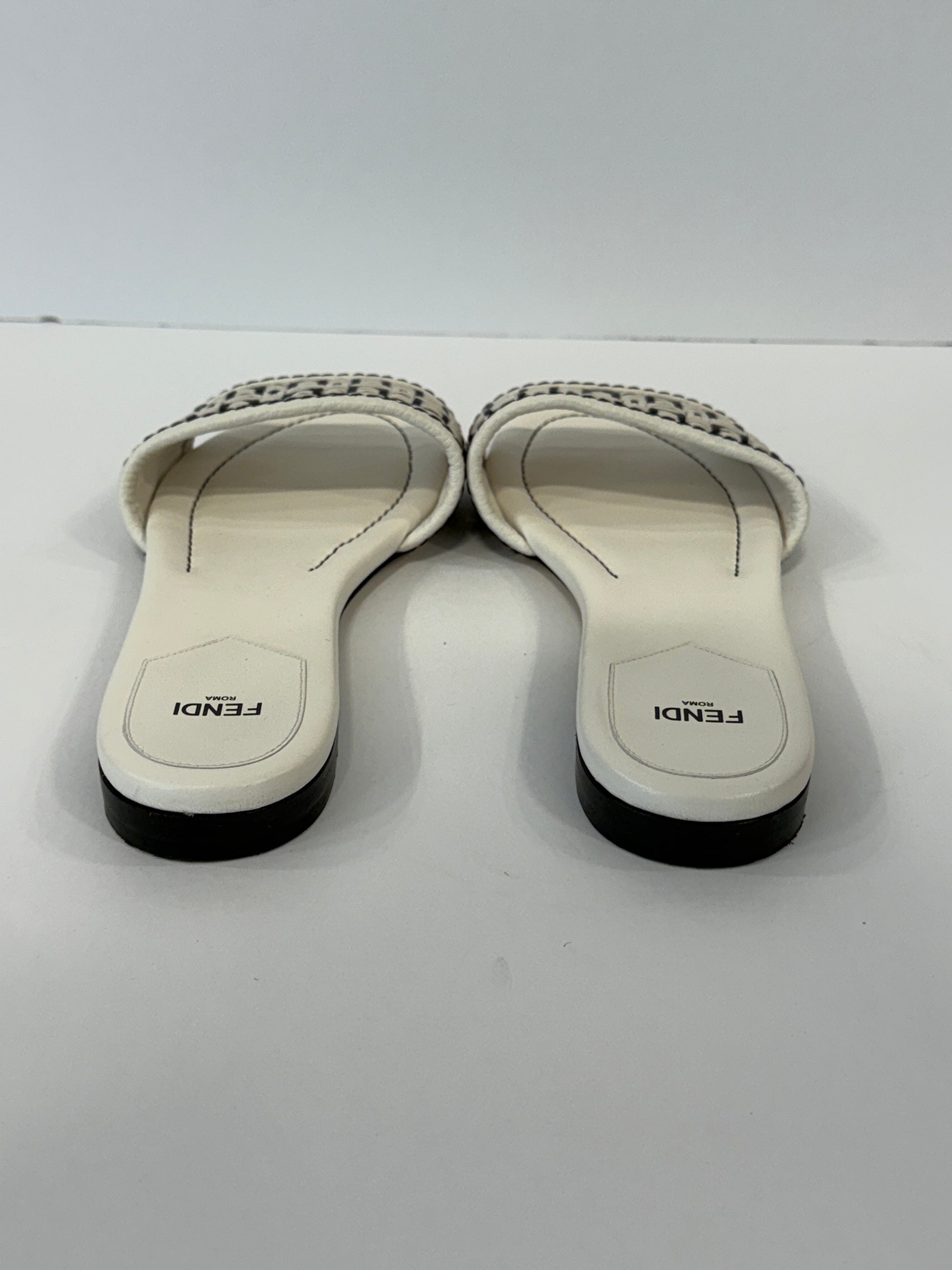 FENDI FF Interlace Woven Leather Slide Sandals / US8-EU39