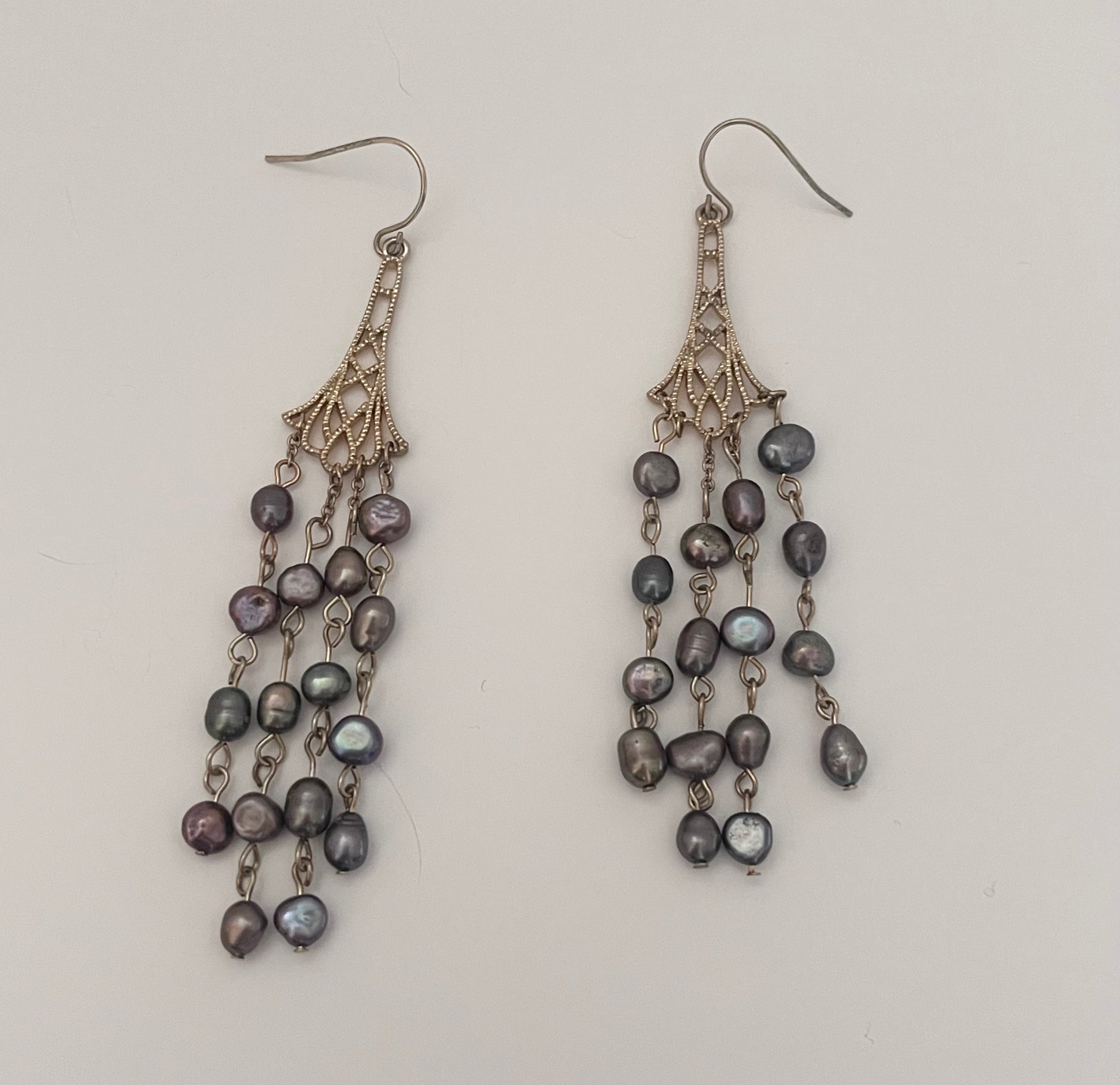 NO BRAND Chandelier Grey Pearls Earrings