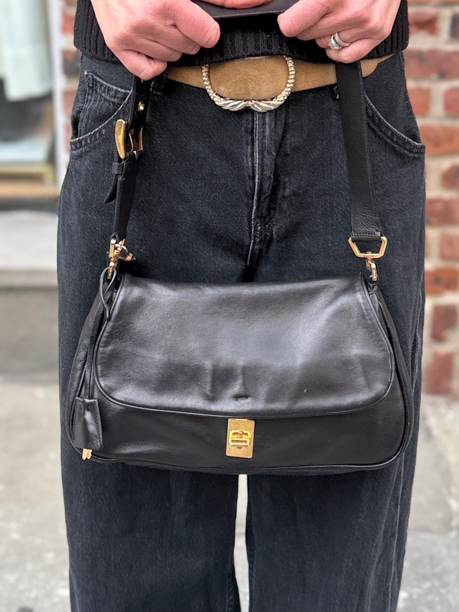 Prada Leather Shoulder Bag With Gold Hardware
